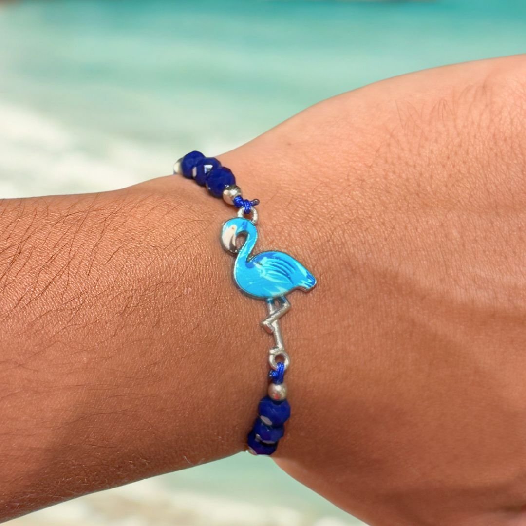 سوار طائر الفلامنجو الأزرق الفريد – خرز كحلي داكن | إطلالة المحيط الهادئة