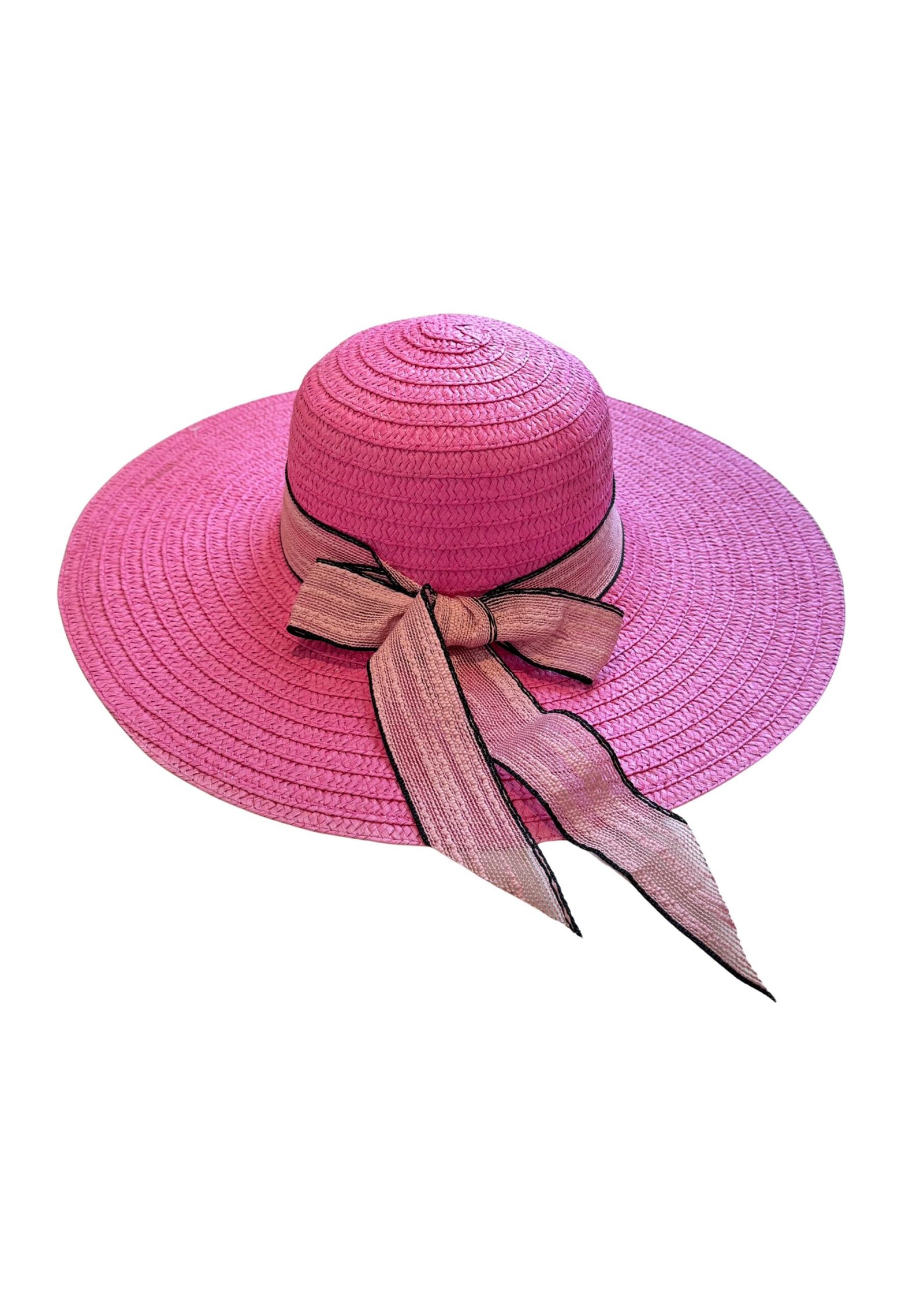 هذه القبعة هي التجسيد المثالي للموضة والعملية. مصممة من القش المنسوج بلون وردي فاقع ومبهر يجعلك محط الأنظار. تتميز بحافة واسعة جداً (فلوبي) توفر حماية فائقة للوجه والرقبة من أشعة الشمس، مما يضمن لكِ الراحة والأناقة على حدٍ سواء.